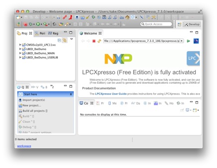 LPCXpresso IDEを ダウンロードページ からダウンロードします。 トラ技のサポートページ に手順が詳しく載っていますので、参考にしてください。