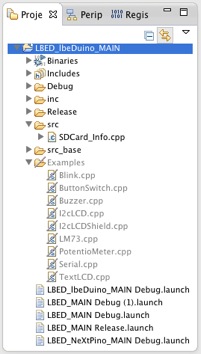 lbeDuinoのメインのプロジェクトは、LBED_lbeDuino_MAINです。プロジェクトを展開すると、 以下の様になります。