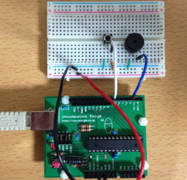 単なるブザーだと芸がないので、ド、レ、ミの音階を出してみます。
