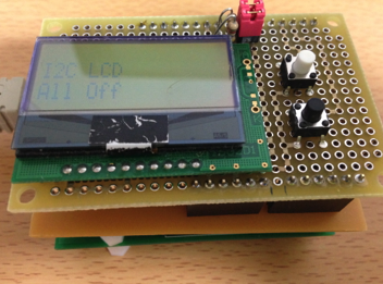 lbeDuinoの例題と同じスケッチでArduinoでもI2cLCDSheildが動きます。
