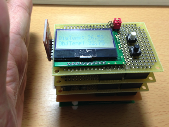 最後に、バッテリーシールドと非接触温度計TMP006シールドを付けて、単独で測定できる温度計を作ってみます。