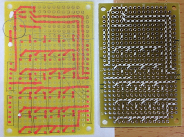 いつものようにテクノペンで、以下の様に基板をつくりました。 ブザーをD3に接続するため、完成版は下図の結線とは若干異なっています。参考程度にしてください。