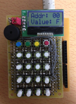 1号機では、LEDと7セグメントを使って表示していましたが、 2号機は、I2C版のLCD1個なので、表示制御は簡単です。