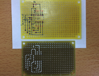 ブレッドボードでの動作が確認できましたので、ユニバーサル基板に組み立てましょう。
