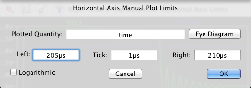 グラフの一部をマウスでドラッグするとその部分が拡大して表示される。 きちんと表示範囲を指定するには、X軸にマウスを移動し、右クリックで表示範囲を指定する。