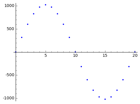 [0.000000000000000, 316.000000000000, 601.000000000000, 828.000000000000, 973.000000000000, 1023.00000000000, 973.000000000000, 828.000000000000, 601.000000000000, 316.000000000000, 0.000000000000000, -316.000000000000, -601.000000000000, -828.000000000000, -973.000000000000, -1023.00000000000, -973.000000000000, -828.000000000000, -601.000000000000, -316.000000000000, 0.000000000000000]