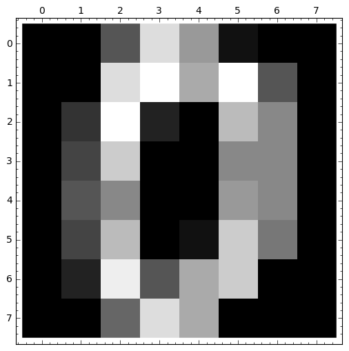 import pylab as pl pl.gray() pl.matshow(digits.images[0]) pl.show() # 何も表示されない