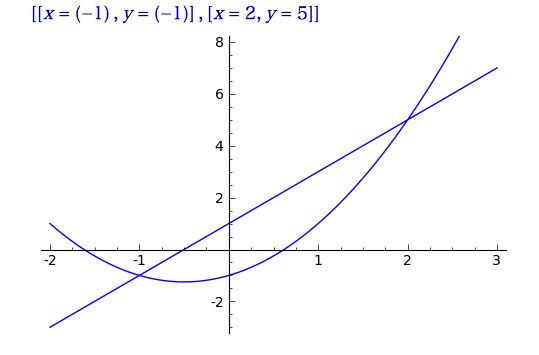 eq = [y == 2*x + 1, y == x^2 + x - 1]
