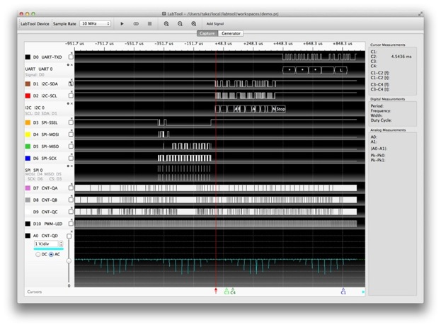 最初の印象としては、アナログ関係はイマイチですが、プロトコルアナライザーとしては、 使えるのではないかと思います。