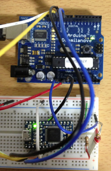 手元のArduino Duemilanoveを使って 飯田さんのブログ に従ってArduino化を試みました。