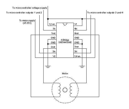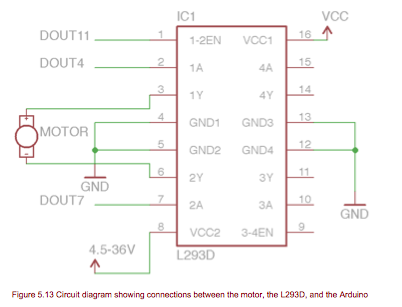 モータの回転を制御するために、図5.11のようなHブリッジモータコントローラを使用します。