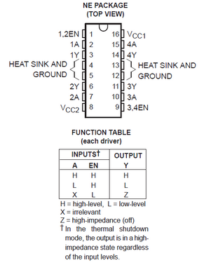 ピンの配置も以下の様にL293Dと同じになっています。