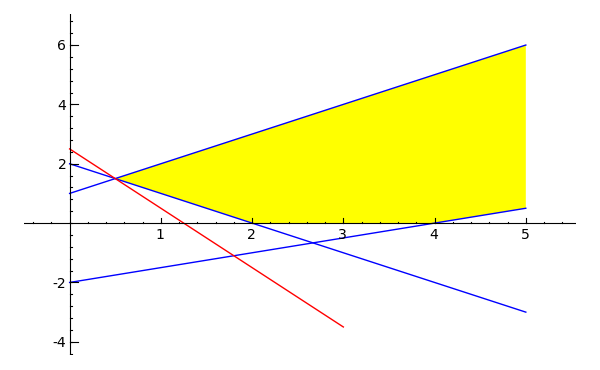 最初にCVXOPTのTUTORIALからSolving a linear program をsageで解いてみます。