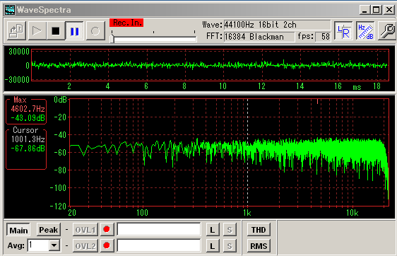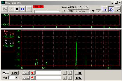 これで、録音ボタンを押すと以下の様に出力波形とそのスペクトルが表示されます。