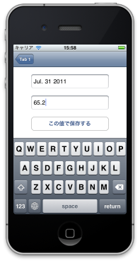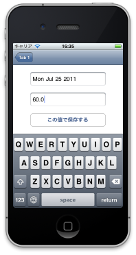 更新の動作確認をします。 体重をベスト60.0に変更すると、テーブルビューにきちんと反映されました。