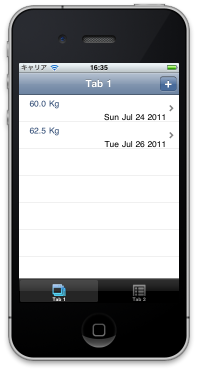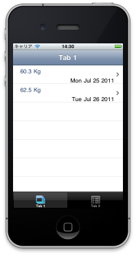 titanium/はじめの一歩の次は、よく使うテーブルビューを表示することにします。 テーブルには、体重と測定日付を表示することにします。