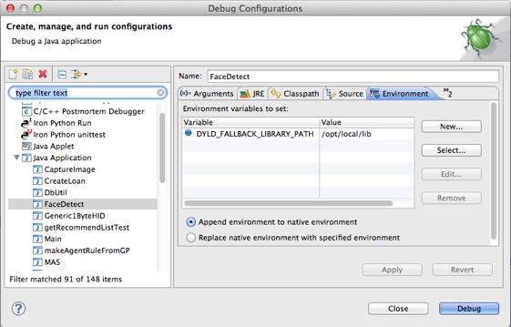 JavaCVの例として先ほどと同じ顔認識をEclipseで実行してみます。