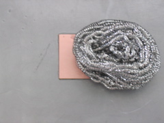 # 銅板の指紋を洗剤とステンレスたわしで落とす