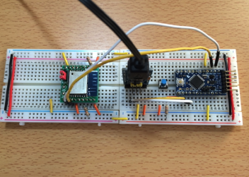 Arduinoと接続してESP-WROOM-02の実験するために、以下の様にブレッドボードにテストベンチを組み立てました。
