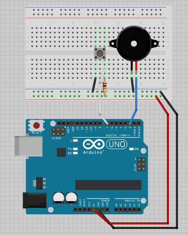 Sound on an buzzer on when button pressed.