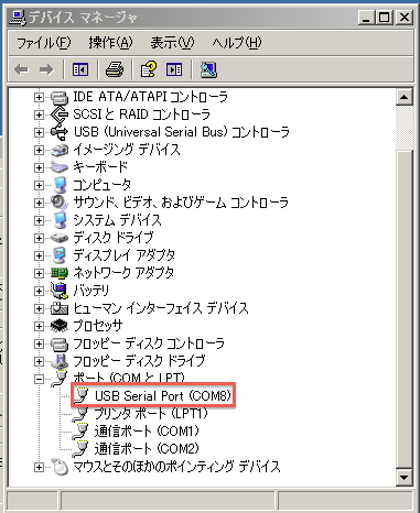 私のXPでは、以下の様にでます。COM8がArduinoにシリアルポートだとメモしておきます。