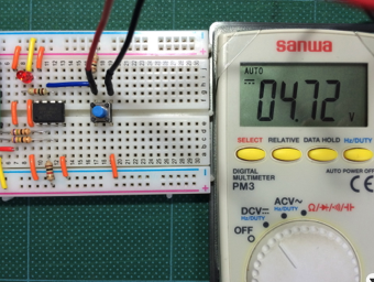 VCCからわずかの電流がマイコンに流れ込み、USBの電圧(この時4.73V)がわずかに下がり4.72Vであり、 デジタル入力は、1のHIGHとなります。