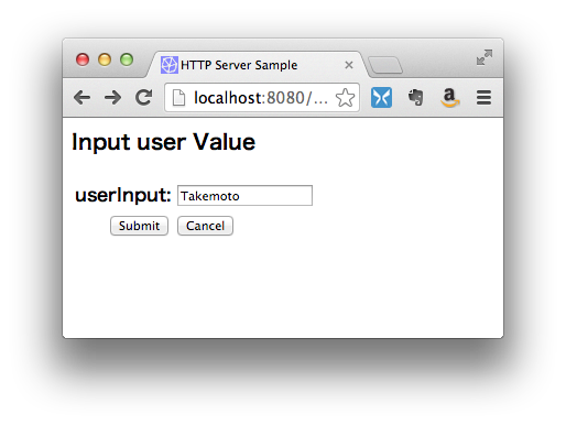 setuserInput関数では、引数のcommandsからuserInputの値を取り出し、 それをPnutsUtilのsetValue関数を使ってUniverse.userInput変数にセットしているだけです。 こんなに簡単にフォームのコールバックが作れるのもArtisoc HTTPサーバの特徴です。