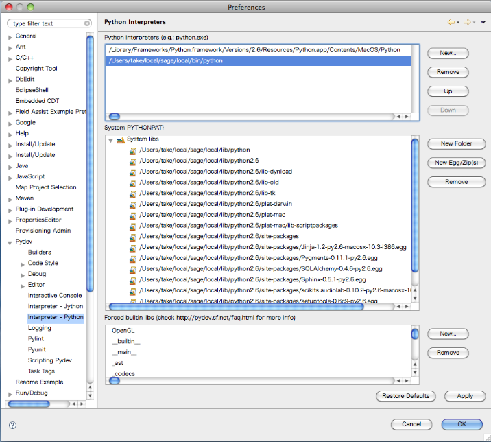 Pydevでsageのスクリプトをデバッグするには、環境変数を整えた後、 Eclipseを起動する必要があります。