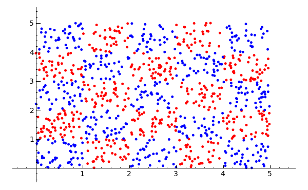 下図は、赤(-1)のグループと青(1)のグループの分布です。