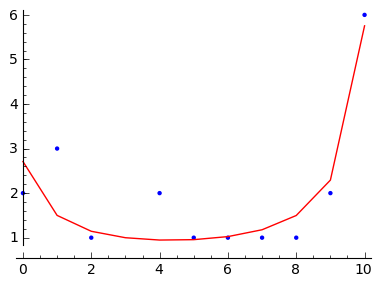 r_plt = list_plot([_rInt(x, beta, sig)*N for x in (0..10)], plotjoined=True, rgbcolor="red")