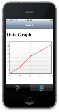 次にplot_window.jsで渡された値をグラフにプロットします。 これには、WebView.evalJS関数を使います。
