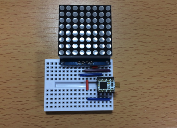 Adafruitのサイトから8x8LEDマトリックスを使ってインベーダーゲームのキャラクタを 表示するスケッチを動かしてみました。