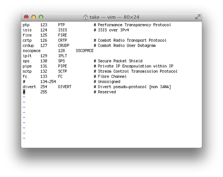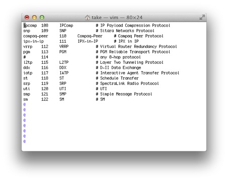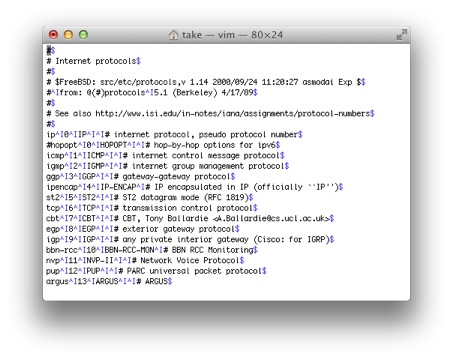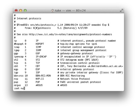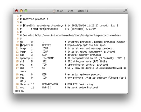 $ view /etc/protocols