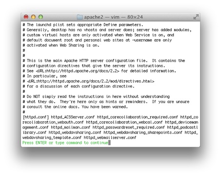 httpd.conf httpd_ACSServer.conf httpd_corecollaboration_required.conf [httpd_cor ecollaboration_webauth.conf] httpd_corecollaboration_webcal.conf httpd_deviceman agement.conf httpd_mailman.conf httpd_passwordreset_required.conf httpd_podcastl ibrary.conf httpd_webdavsharing.conf httpd_webdavsharing_sharepoints.conf httpd_ webdavsharing_template.conf httpd_webmailserver.conf Press ENTER or type command to continue