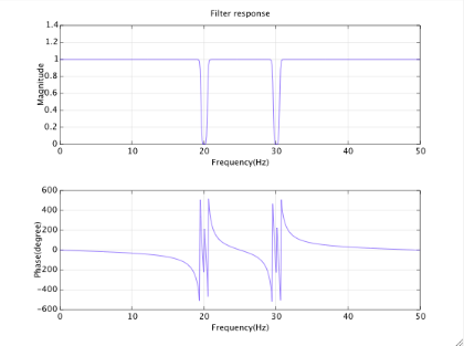 20Hzと30Hzを遮断するフィルタを作成してみます。