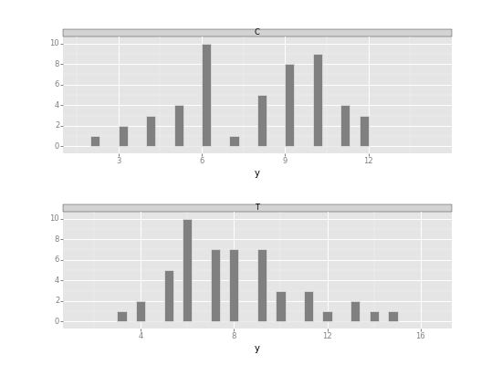 p = ggplot(d, aes(x='y'))