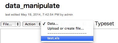 sageでは、作成されたExcelファイルtest.xlsがDATAフォルダーに保存され、 dataメニューから作成されたtest.xlsをダウンロードできます。