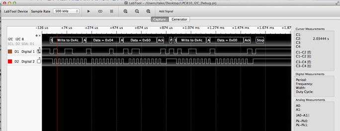 こんな時には、プロトコルアナライザとして購入しておいたLabToolの出番です。