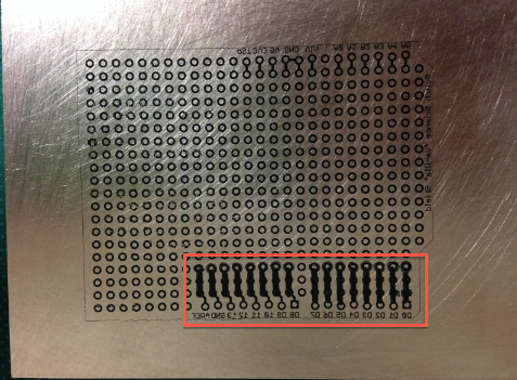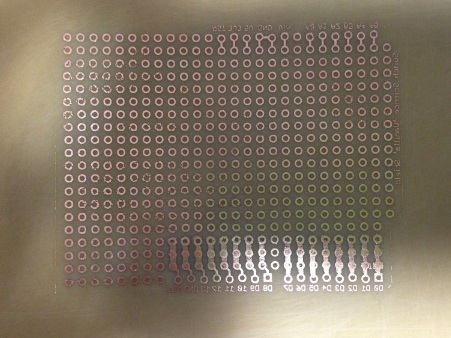 シンナーでマッキーペンで描いた回路を消し、ステンレスたわしでこすって熱転写したトナーを取り除きます。