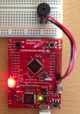 LaunchPadとの接続は、J1_2(PB5)とJ3_2(GND)を圧電スピーカに接続するだけです。