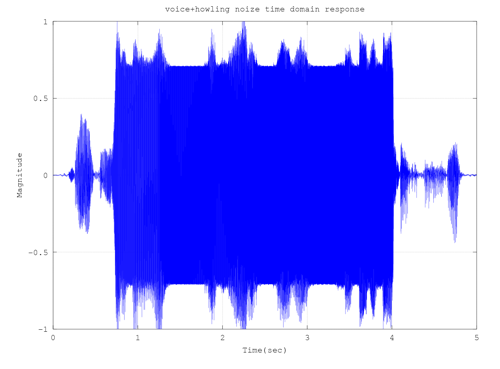 octave.eval("title('voice+howling noize time domain response');")