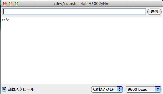 と入力すると、それっぽくスピーカら音声が出力され、シリアルモニターには、 "*>"と返ってきます。
