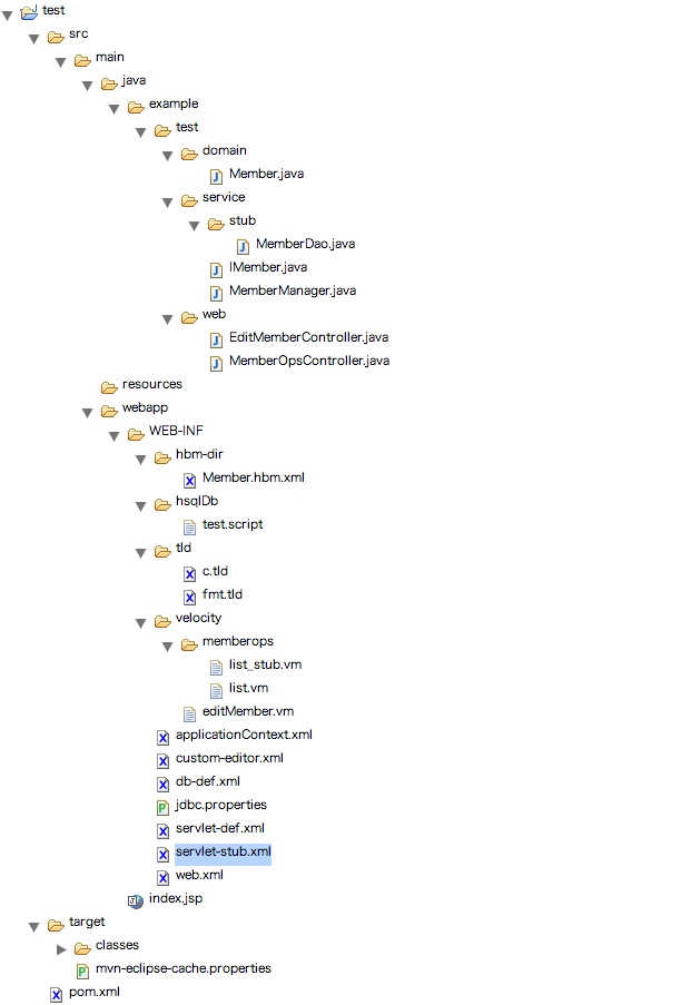 warファイルは、target/test.warに生成されます。 これをtomcatのwebappsにコピーします。