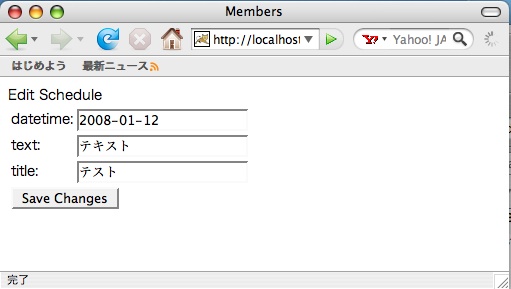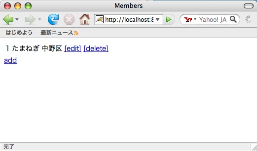 test.warファイルをtomcat/webappsにコピーします。 ブラウザーでhttp://localhost:8080/test/scheduleops/list.htmを指定すると、 addリンクだけのページ表示されますので、addリンクをクリックします。