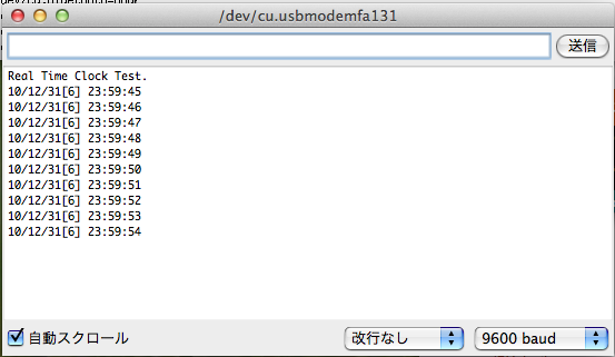 シリアルCDCでリアルタイムクロックの値を表示するテストプログラムで動作を確認しました。