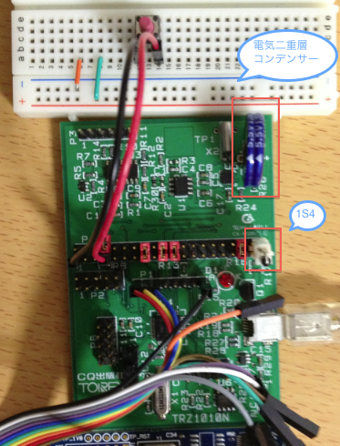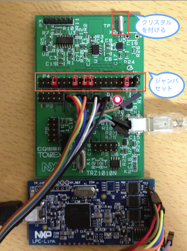 ARM学習基板は、いろんなチップのてんこ盛りなので、実験をするにはジャンパ線で 接続しなくてはなりません。 *6