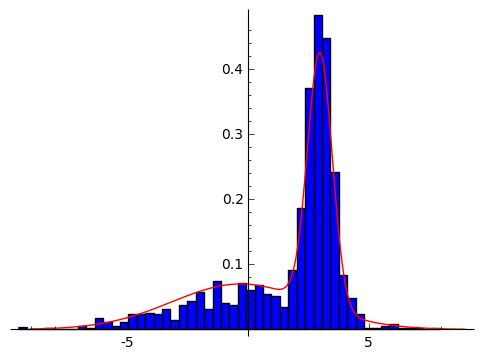 g01 = plot((_gauss(x, mu0, sig0^2)+ _gauss(x, mu1, sig1^2))/2, [x, -9, 9], rgbcolor='red')
