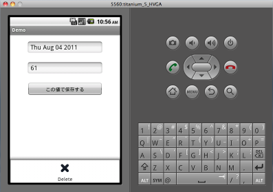 Androidシミュレータでメニューボタンを押すと、以下のようになります。