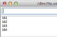 次々にArduinoの光センサーから読み取られた値がパソコンに送られてくるのが分かります。