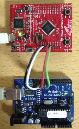 AdruinoとLaunchPadの結線は、以下の様になっています。